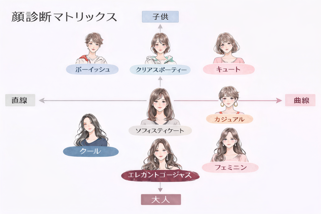 お顔の印象を元似合う洋服の提案する手法です
