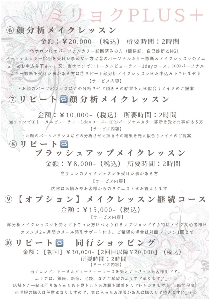 ミリョクPlus+リピーター様専用 Menu List